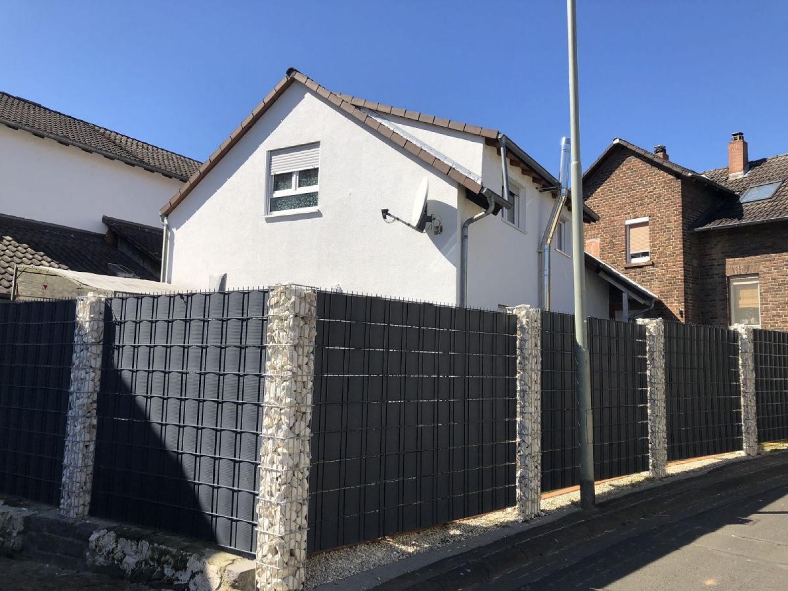 Bei diesem Kunden wurde aufwendig eine neue Zaunanlage eingebaut. Zugegeben sind solche Bauweisen nicht jedermann's Sache. Doch wenn man direkt an einer recht verkehrsbewegten Straße wohnt, dann kann man doch verstehen, dass der Hausbesitzer auch mal seine frei Zeit ohne Blickkontakte genießen möchte.