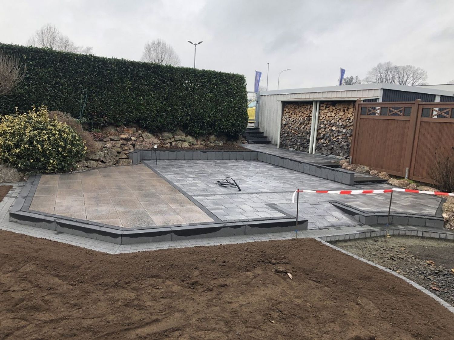 Diesen Garten durften wir zum zweiten mal gestalten. Vor vielen Jahren haben wir den Garten mit bunten Klinkersteinen und einer Trockenmauer gestaltet. Doch nun hatte unserer Kunde einfach mal Lust auf was Neues. Trotzdem haben wir noch zwei Bilder der alten Anlage zum Vergleich weiter mit in diesem Projekt. (ganz unten). Die Trockenmauer blieb auch im neuen Garten erhalten.