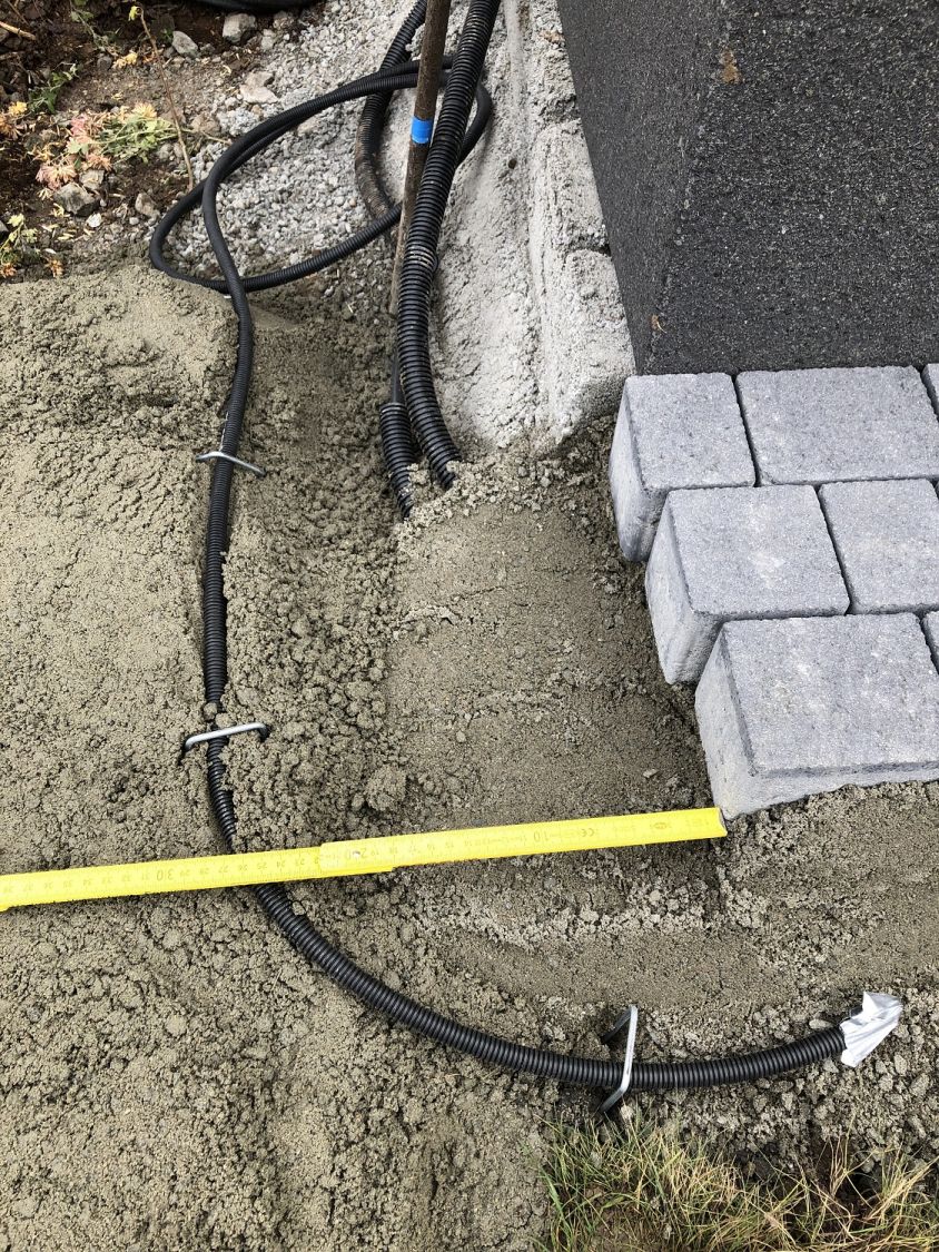 Bei solchen Veränderungen bietet sich natürlich auch an, dass man die Möglichkeit nutzt, um neue Kabel für Beleuchtungen o.a. zu verlegen. Insbesondere beim Gartenhaus und für eine Mähroboterstation haben wir die Kabel genau eingemessen, um beim aufdübeln der Elemente nicht die Kabel zu beschädigen. Vorausschauend denken kann einem viel unnötigen Aufwand durch unnötige Schäden im Nachhinein ersparen.