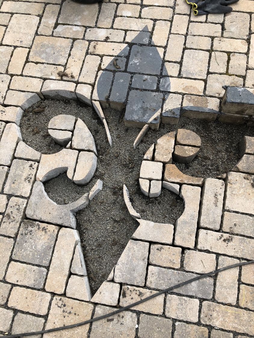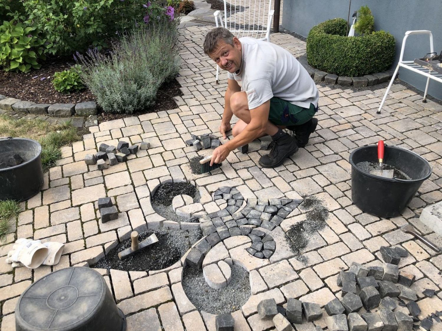 Nachdem es in dem Garten von Freunden schon fast vor Lilien wimmelt, da war irgendwann klar, dass dort auch in das rustikale Klosterpflaster noch eine Lilie muss. Eine ähnliche Arbeit hatten wir schon einmal bei einem Dachdecker gemacht. Also hieß es wieder Schablone fertigen lassen und dann das Muster fein säuberlich ausschneiden. Danach wurde die Fläche dann mit 4-6er Basaltpflaster ausgepflastert. Und so befindet sich nun noch eine Lilie mehr im Garten von unseren Freunden. Und solche Arbeiten machen einfach immer wieder richtig Spaß.