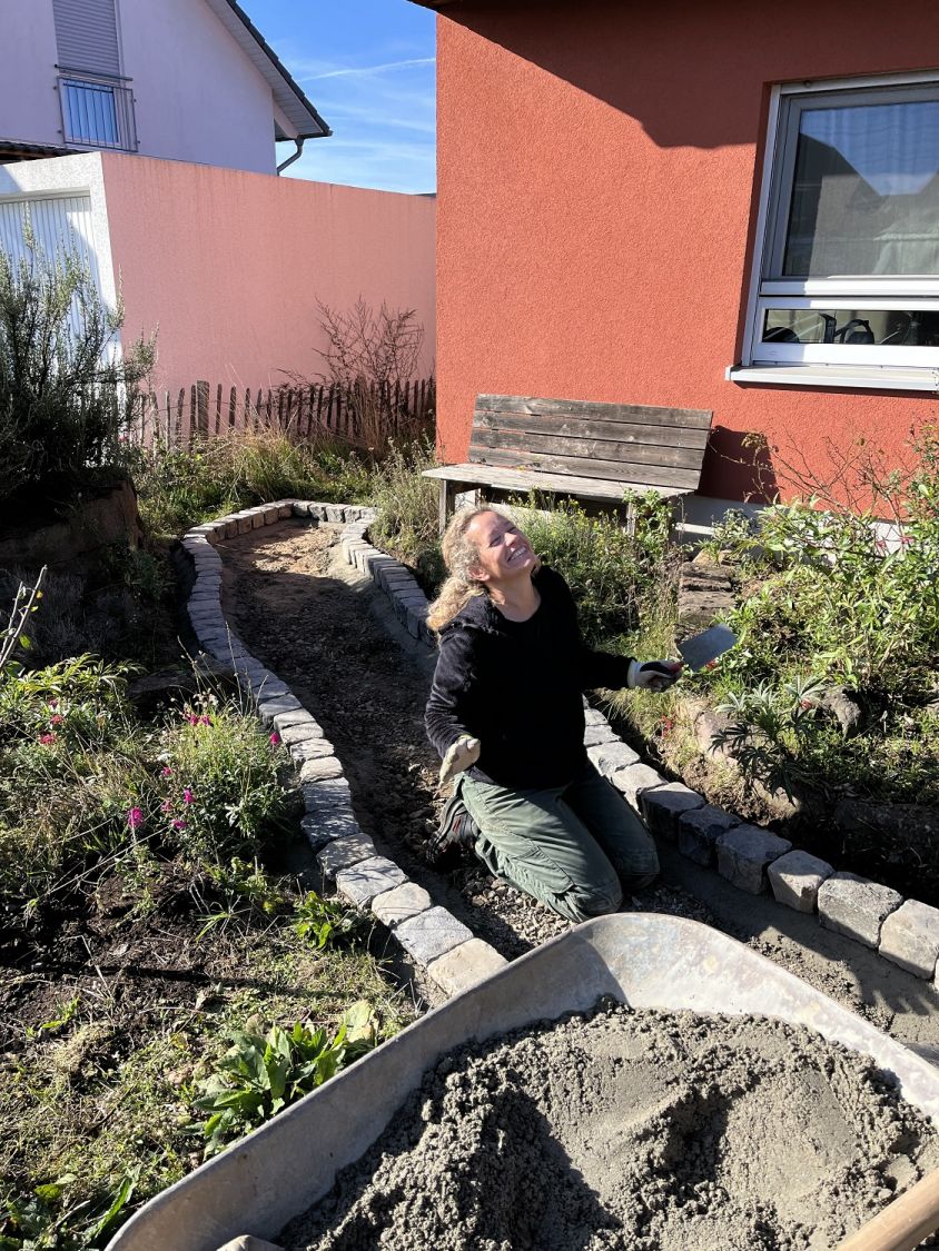 Aber das Pflaster hat auch schon beim verlegen einen entscheidenden Vorteil. Man braucht einfach keine Steine an den Rändern schneiden. Auch geschwungene Wege lassen sich wunderschön, problemlos gestalten. (Siehe auch unter Projekte "Beim Gartenprofi zu Hause"