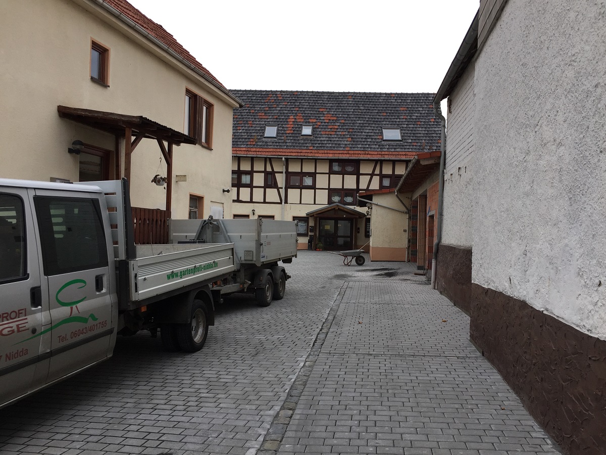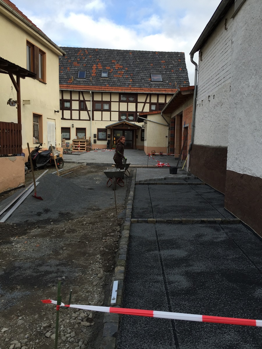 Eine Hoffläche war viele Jahre nur geschottert. Da sich auch eine Praxis in einem der Gebäude befindet, war es an der Zeit hier saubere Wege zu schaffen. Denn insbesondere Menschen, die auf Gehhilfen angewiesen sind, wissen, wie schwer es ist sich auf unebener Fläche zu bewegen. Ebene Flächen bieten Sicherheit und mindern so die Unfallgefahr. Mit dem Pflaster Ökoplus-Plaza konnten wir hier behilflich sein. Ein einfaches Pflaster, dass eine recht schmale "Öko-Fuge" besitzt. Der Vorteil, man hat eine versickerungsfähige Fläche geschaffen, bei der die Fugen aber kaum bemerkbar sind. Auch beim Schnee räumen im Winter eine saubere Sache. Und es sieht noch dazu viel besser aus, als die alte Schotterfläche.